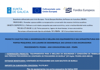 AXUDA AO PROXECTO COLECTIVO "EQUIPAMENTOS PARA A MELLORA DA SEGURIDADE E CONDICIONS DE TRABALLO DAS PERSOAS PESCADORAS DA CONFRARIA DE PESCADORES DE BURELA" (Nº Expte:PE209G-2025-00013)